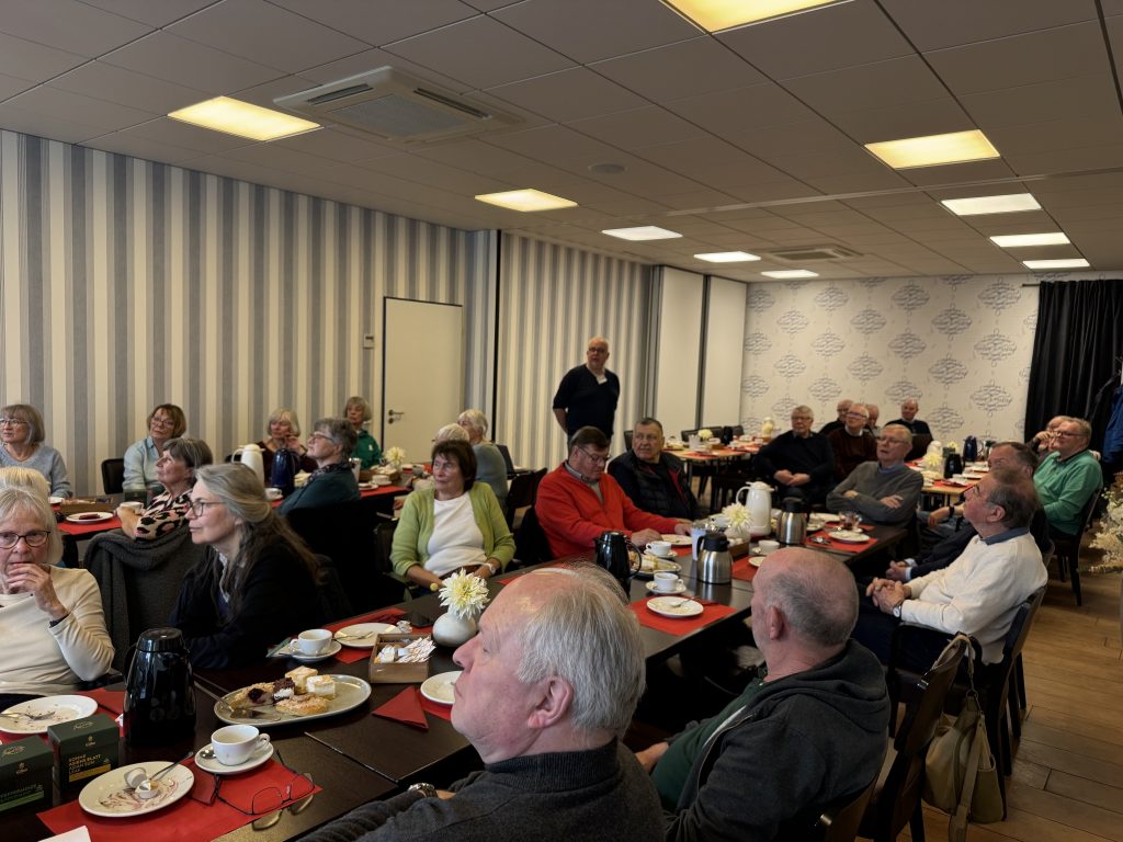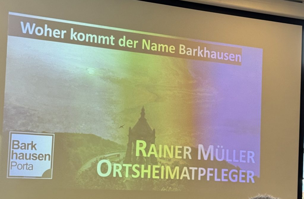 Bei Kaffee, Tee und einer Auswahl an Kuchen war Zeit für einen regen Austausch. In diesem Jahr hatte der Vorstand eine Überraschung geplant: Rainer Müller, Barkhauser Ortsheimatpfleger, erzählte uns etwas über unser Dorf: wann wurde es erstmals erwähnt, Römerlager, Aulhausen, Barkhausen, Bastau, Weser, Wiehengebirge, woher kommt der Name Barkhausen überhaupt. Warum Leitern im Wappen? Informationen, alte Bilder, Artefakte, alles stieß auf großes Interesse. Auch über „dat platt kürn“ wurde gesprochen und viele mussten zugeben, verstehen geht noch, sprechen eher nein. „Wenn man sik mehr Eten opfüllt, as man opkriegen kann, denn sünd de Ogen grötter as de Mund“ – was bei uns natürlich nicht der Fall war.